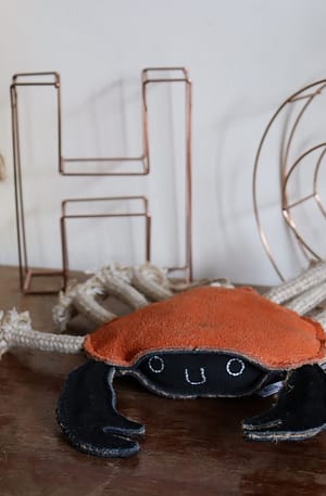 This interactive dog toy is made from natural jute and stitched over with soft suede.